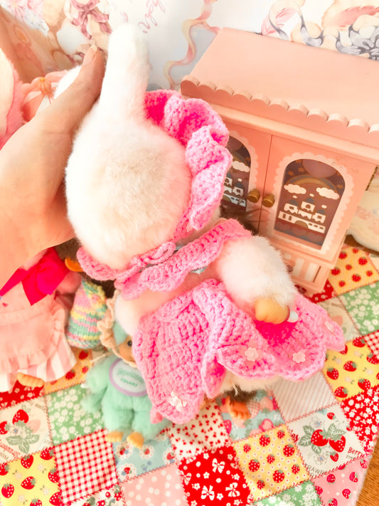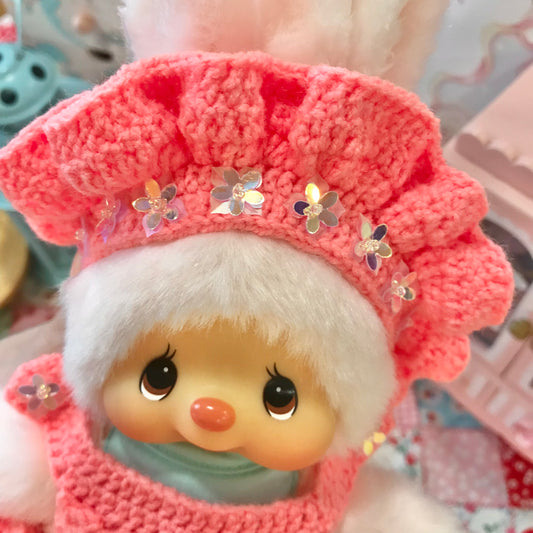 Pink Crochet Dress and Headband Set for Monchhichi