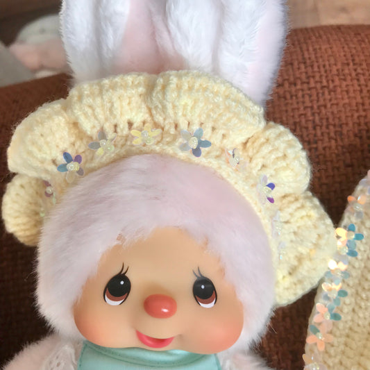 Yellow Crochet Dress and Headband Set for Monchhichi