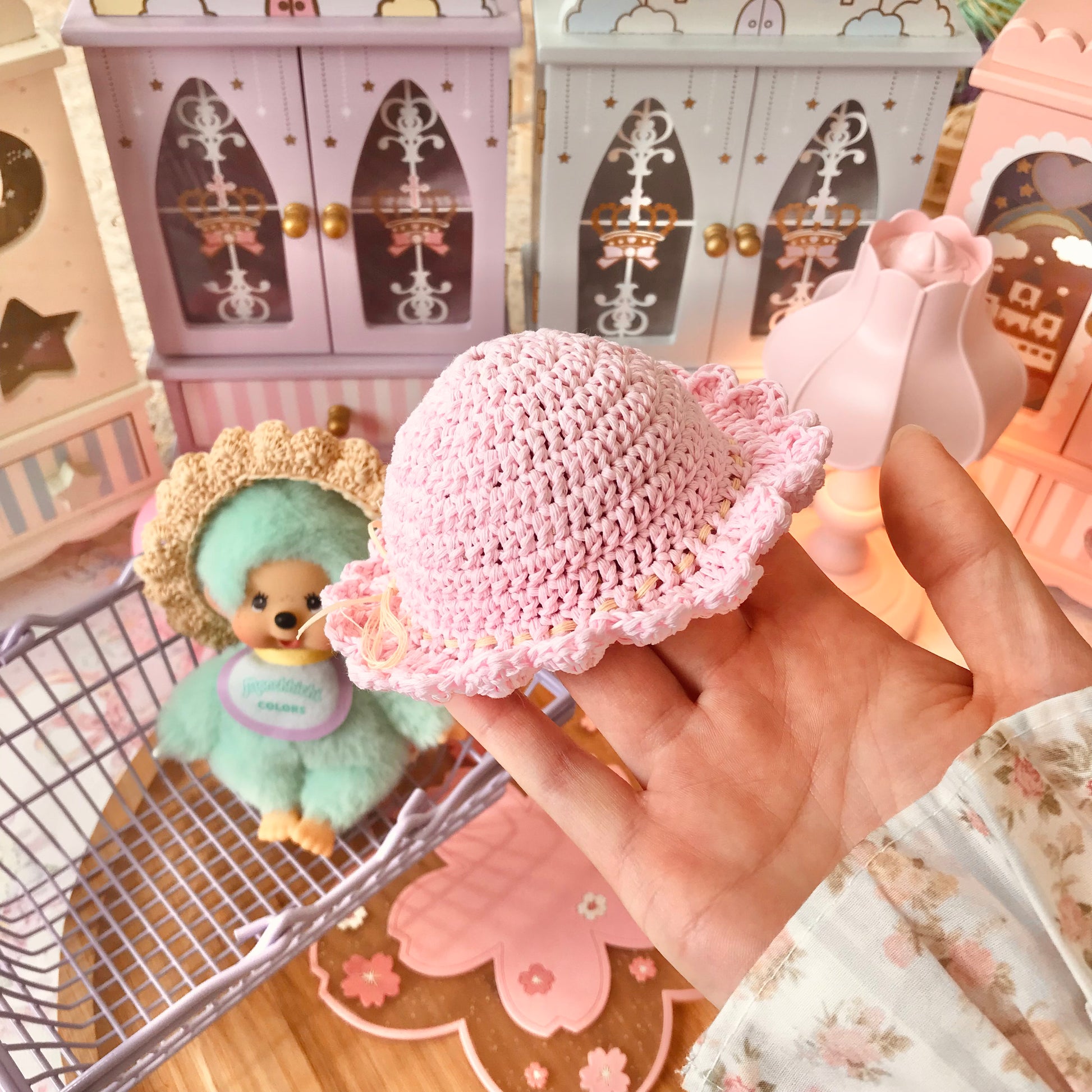 Pastel Pink Crochet Hat for Monchhichi Toys